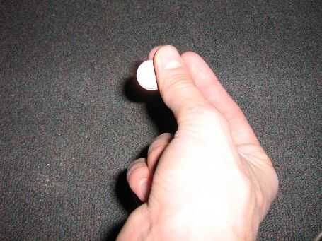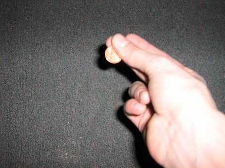 Ahora Coloque su pulgar en la moneda, como se muestra. ¿Ver cómo todavía se puede ver mi dedo mostrando debajo de la moneda? Que cómo lo tiene que ser.