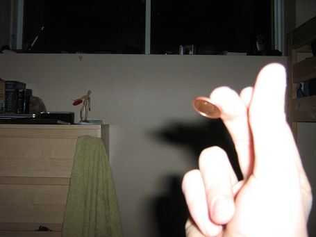 Ahora mantener su brazo en la posición del paso 5 y coloque el dedo con la moneda. La moneda debe disparar a través de la habitación. Mayoría de las veces usted puede oírlo zumbando.