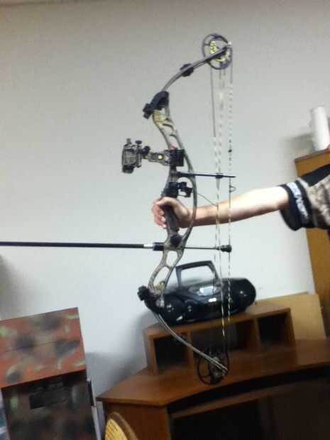 Hey voy a mostrarles chicos cómo disparar un arco compuesto. Primero de debe ir a una tienda de tiro con arco y tienen su proa fija a la longitud del drenaje de la derecha y la cantidad de libras que se dibuja detrás. Esto, por supuesto, es compra tu