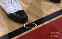 3. Ubique el pequeño círculo en la línea de tiro libre- En la línea de tiro libre en cada gimnasio de baloncesto interior, hay un pequeño punto o clavo que representa el centro de la línea. Alinea con el centro de la llanta. La segunda imagen se muestra donde es este círculo.