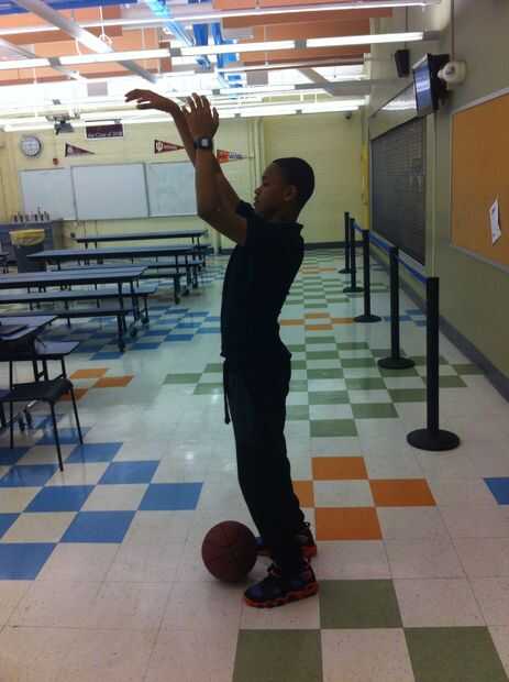 Justo antes de llegar a la altura de tu salto, soltar el balón con la mano tiraba a la canasta. Enderece el codo y coloque la muñeca para que la bola de arcos, en lugar de avanzar hacia la canasta en una línea recta.
