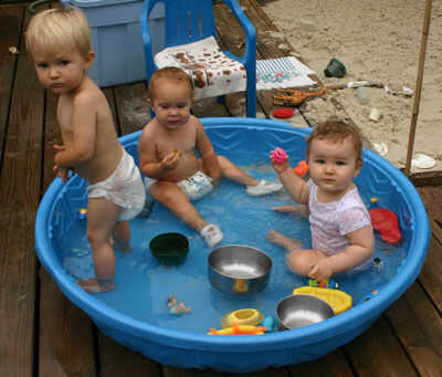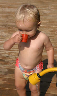 -Cuando está caliente afuera los niños naturalmente tendrá que beber el agua que están jugando en. Esté listo con agua fresca para saciar su sed.
