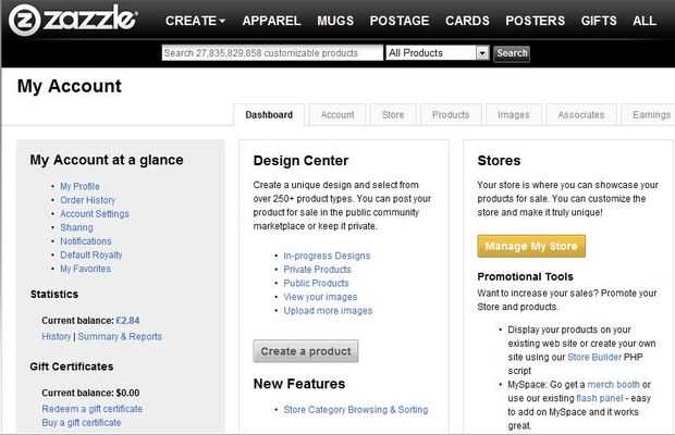 -A continuación, si no está ya allí, necesita hacer clic en "Mi cuenta en la esquina superior derecha." Esto le llevará a su propia página de "Mi Zazzle" donde usted podrá administrar su cuenta.