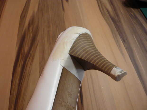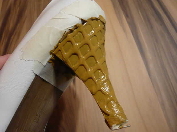 1. cubrirse su zapato y las áreas que desea proteger con cinta adhesiva. Tal vez sería una buena idea a la arena su talón primero para desbastar la superficie para que la pintura dure más. Mina ya era áspera, así que me salté ese paso.