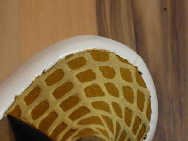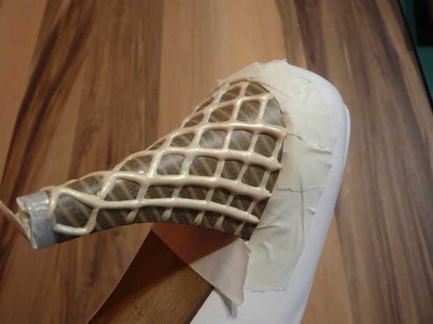 2. tomar su pluma perla pegamento pistola y dibujar una cuadrícula de galleta en los talones. Dejar seco/se endurecen.
