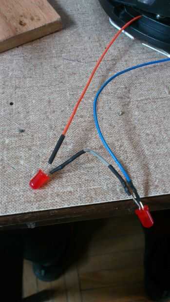Poner el tubo del encogimiento en ambos LEDs, inserto dentro del tubo del encogimiento del tubo, asegúrese que el tubo transparente es tocar ambos LEDs y luego el tubo del encogimiento del calor.