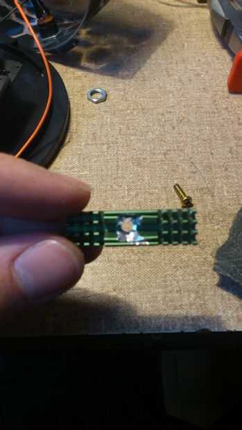 Para enfriar el LM317 en el agitador está trabajando, me puse un pequeño radiador de refrigeración modificado por mi. Fijarlo con un tornillo y una tuerca. Se puede ver a continuación.