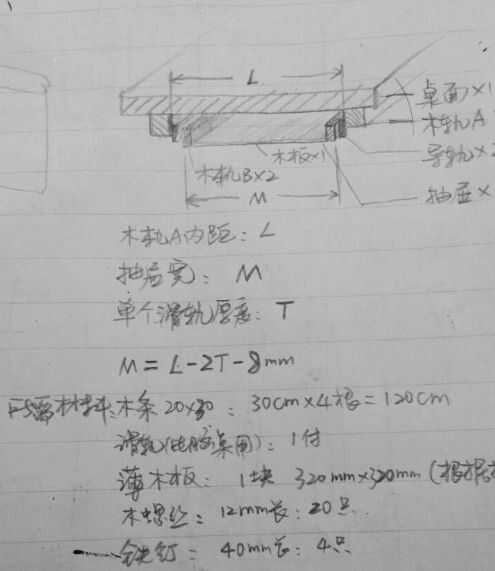 Cambiar según el tamaño del tamaño real desea cajón. Estoy aquí al cajón del tamaño es 32 cm * 30 cm (ancho * profundidad). Son comunes de la computadora escritorio con dos carriles, el espesor de 1 cm. ecuación (M = L-2T-8 mm), 8 mm es espacio activo (lado 4 mm).