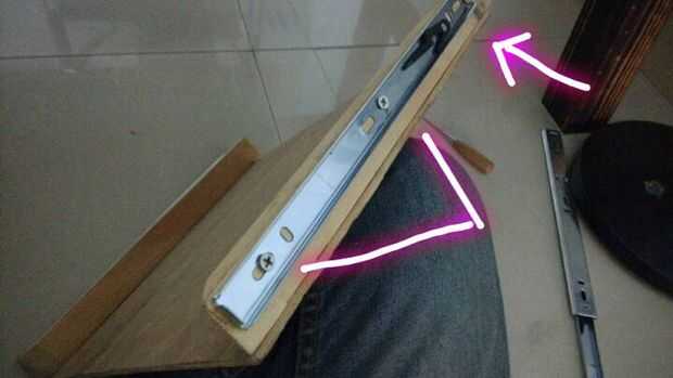 La porción activa del riel se fija en los cajones laterales con tornillos para madera. No prestar atención a la dirección de la corredera hacia atrás, negro tapón en el extremo distal.