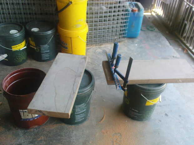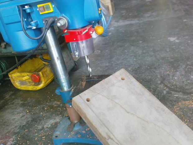 Quiero que además de ayudarme a cortar el tablón chengal el tamaño (dimensión = 24 "x 10" x 1 5/8"), también me ayudó a hacer los 4 agujeros (diámetro = 6/8) en las esquinas de la madera de la cuerda pasar a través.