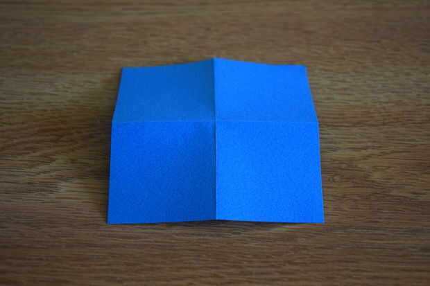 1. Hacer dos pliegues de montaña doblando el papel hamburguesa y luego estilo de Hot Dog (su papel es un cuadrado, a doblar perpendicular y horizontal)