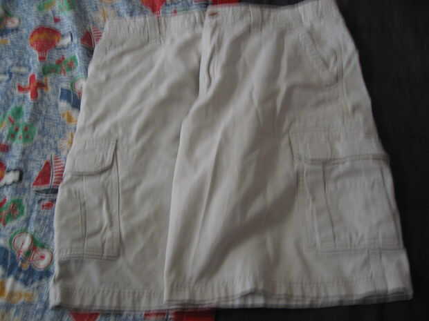 En primer lugar conseguir un par de pantalones cortos y doblar la entrepierna para hacer un rectángulo.