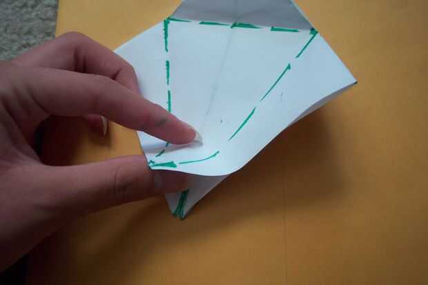 3. seguir los pliegues que hace, incluyendo el pliegue superior del triángulo.