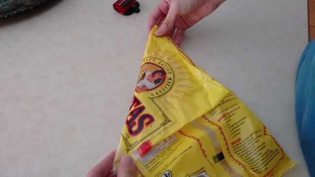 Mediante el pliegue de los dedos del índice el triángulo sobre la bolsa hasta que se ve algo como la segunda imagen. Mover los pulgares sobre la parte superior del pliegue