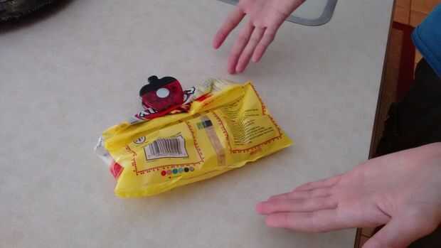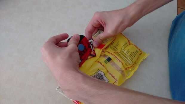 Finalmente listo, todo junto con sujetar en la mano y agregar un pin de cierre o cualquier otro tipo de clip (o incluso un tenedor como se puede ver en la última imagen) con la otra mano para mantenerlo todo junto. Si lo has hecho bien debería verse como las dos últimas imágenes. Si desea asegurarse de que funciona, tratar de presionar algunos del aire, si siente resistencia, lo que significa que funciona.