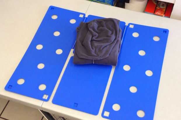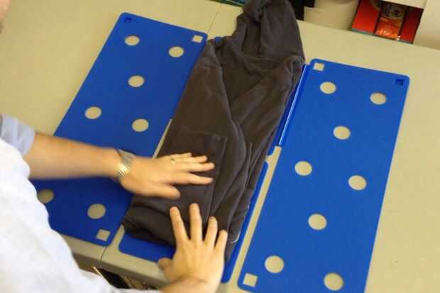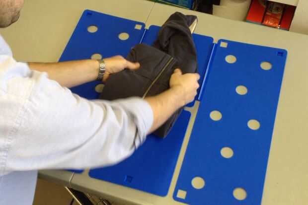 Debido al material más grueso, que tenga que doblar la parte inferior de la camisa hasta la parte superior con la mano en lugar de utilizar la parte inferior de la FlipFold (imagen 5).