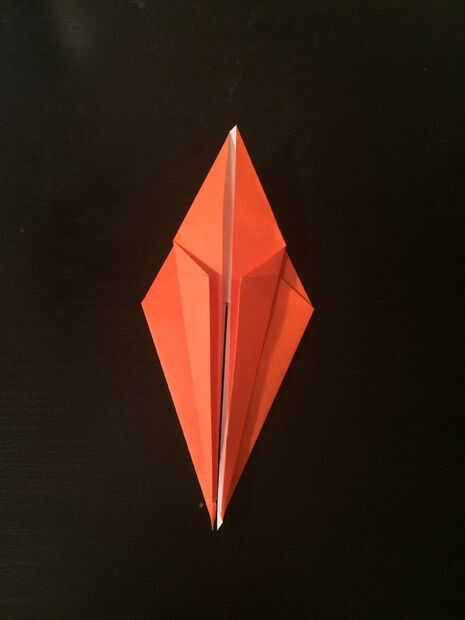 Recordar los pasos anteriores, esto es muy similar a un paso que se ha hecho antes. Doblar los bordes hacia el centro como se muestra en los cuadros sobre. Voltear y repetir del otro lado.