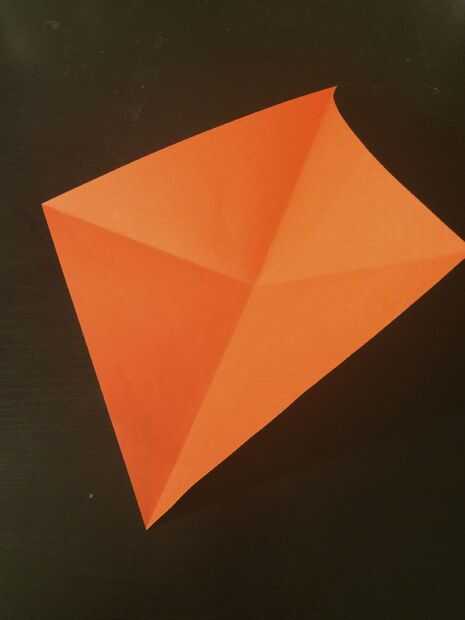 Doblar las esquinas opuestas entre sí para hacer un triángulo y hacer un pliegue. Lo mismo para el otro juego de las esquinas opuestas y hacer un pliegue. Asegúrese de que el color que desee la grúa que como producto final es el color que está en el interior cuando te retiras.