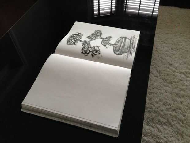 Coloque su trabajo en algún lugar que es de fácil acceso y cuenta con un fondo claro que no de su arte. Aquí utilicé una mesa negra para el fondo. Al tomar la fotografía siempre asegúrese de que su cámara está en el mismo nivel que su obra de arte no aparece distorsionada y ve exactamente cómo es en persona.