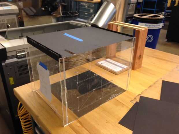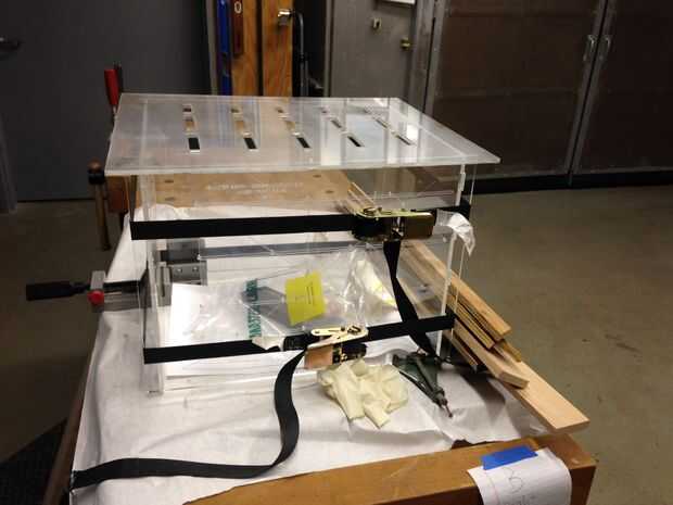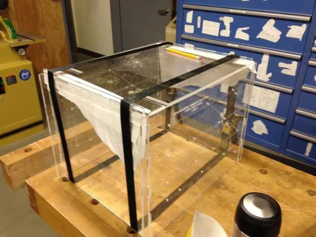 Una vez que se corta el acrílico, utilicé cemento acrílico y abrazaderas de correa para pegar toda la pieza y que se siente durante la noche.