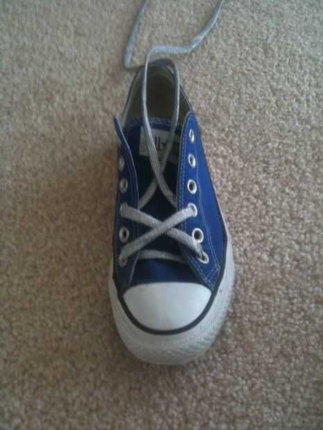 Luego saltarse los próximos 2 ojales, cruzar sus cordones y pase a través de los ojales.