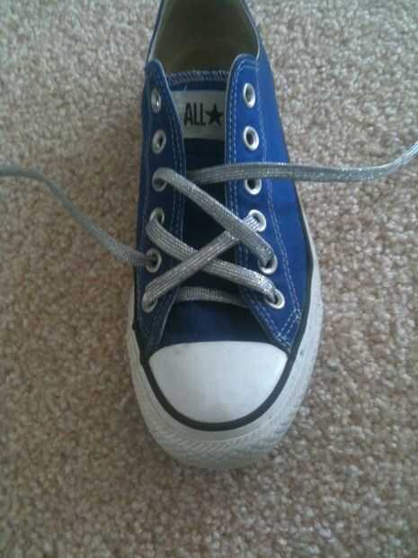 a continuación, tome ambos extremos de los cordones y pase a través de los ojales que omiten.