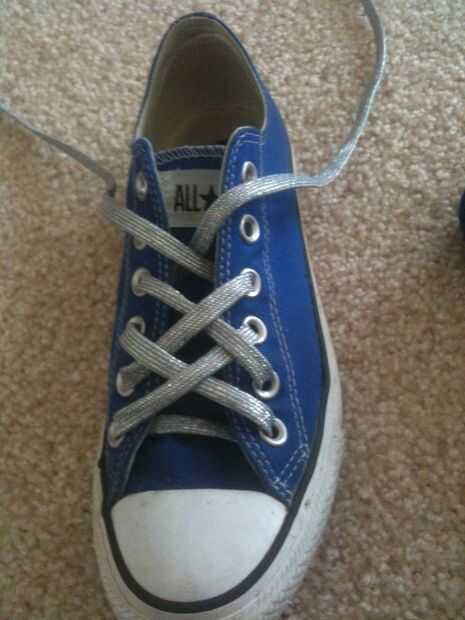 Luego con el extremo derecho de los cordones de los zapatos, saltar la anilla siguiente hasta y pase a través.