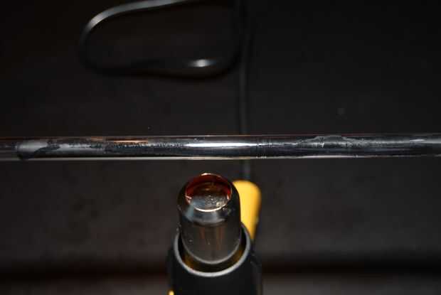 Aquí es donde empieza a interesante. Antes de llegar a doblar, te recomiendo que practiques un par de veces para realmente conseguir colgar de él. En primer lugar usted necesita para asegurarse de que usted puede conseguir la flexión de goma en el tubo, más allá de la parte donde quiere doblar. La mejor manera que encontré para hacerlo era con fuerza, agua y jabón. Ahora que necesita para planear lo que tubo que va a comenzar con y averiguar cuánto tubo vas a necesitar. Cuando a partir de la utilización de la curva de tubo el tubo completo y ajuste como usted va. A continuación usted debe poner la pistola de calor a baja temperatura y lo hacia pero no debe ser capaz de moverse alrededor de su propio (mirar el cuadro para la referencia). Para empezar a te de la curva necesita tomar la parte que vas a doblar y que bajo el calor y girarlo un poco como un asador estilo rotisserie. Esta es una parte que no desea apresurarse porque afectarán los resultados finales. Consigue demasiado caliente la tubería corre el riesgo de tener burbujas y una vez que pasa el tubo es inútil y deberás empezar de nuevo. Si la tubería es demasiado fría y tratar de doblar no se derecha dobla. La primera curva en la pipa es el menos importante y asegúrese de que usted se dobla un poco ya que lo que usted necesita. Fácil de cortar tubo que agregar tubo extra. Nunca medí mis pipas cuando doblando. Lo hice todo por el ojo y se multa. Si usted desea medir se puede. Para obtener un perfecto 90° no es necesario pero si eres un perfeccionista puede obtener una herramienta que le ayudará a doblan los tubos en el ángulo exacto. Se llama un "PETG XSPC doblez fácil herramienta" y lo puede conseguir en amazon. Las tuberías no son demasiado duro para doblar en la dirección que quieres pero si usted, pero la presión en la manera que desea el tubo para doblar como que calienta, hace más fácil. Esta es la parte más difícil del instructable y puede llegar la frustración muy fácilmente cuando no puede obtener una curva. Tómese su tiempo y no se Apure y todo debería estar bien.