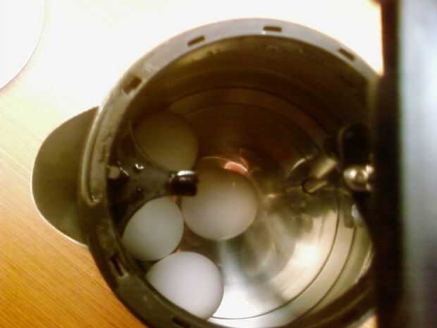 Si tienes huevos frescos *, el número de huevos puede hacer en un tiempo depende del tamaño y la forma de su hervidor eléctrico. Tengo un Chef opción inalámbrico eléctrico caldera modelo 677 y puedo cómodamente 4 huevos. Es necesario dejar espacio dentro de la olla para que no toquen el elemento calefactor. Una vez que usted coloque los huevos dentro de llenarlos por lo que hay alrededor de una pulgada de agua por encima de ellos.