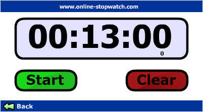 http://online-stopwatch.com/después de haber coloca sus huevos en la olla, lleno de agua y encendido se debe encender. Hervidores eléctricos más estos días tienen un apagado automático. Mientras está calentando hasta es necesario tener un contador preparado para cuando apaga solo. Yo uso http://online-stopwatch.com/ tiempo de mis huevos. Una vez allí Haz clic en "Count Down", durante 13 minutos y esperar. Una vez que se apaga la Hervidora de agua, comenzar la cuenta regresiva.