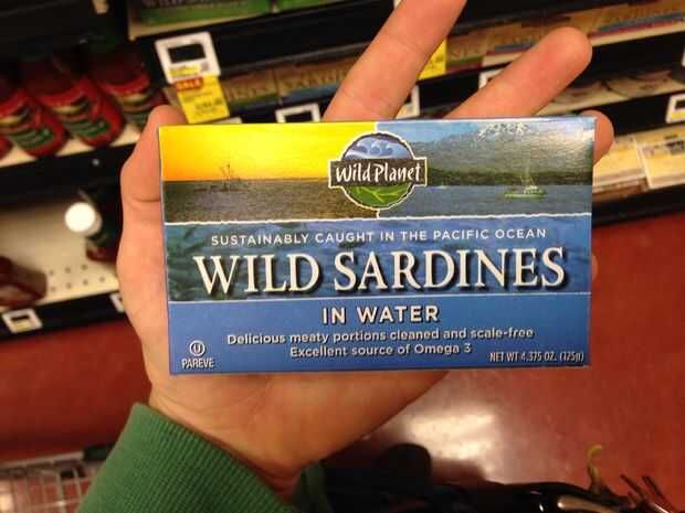 Carnes enlatadas pueden hacer un convite ocasional muy agradable para tus cangrejos. El truco es encontrar uno solo en agua, con mínima o sin sal agregada. Estas sardinas salvajes tenían un poco de sal marina y cuestan $2,50 en Whole Foods.