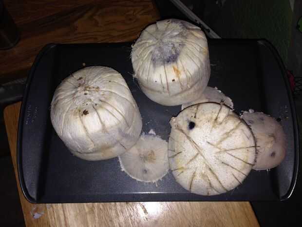 Use un cuchillo para hacer cuchilladas en la cáscara blanca es, sobre todo cerca de la base. Esto les ayudará a secar más rápidamente en el horno.