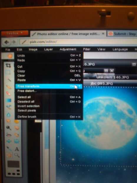 1 cortar la luna como los cuernos y pegar 2 Haga clic en transformación libre y zoom y minimizar la imagen 3 coger el borrador y borrar la imagen en un círculo
