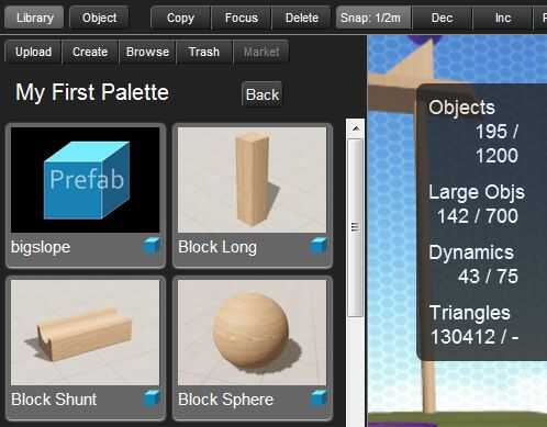 Los objetos se crean fuera de parte de la nube, pero hay una biblioteca de objetos para elegir.