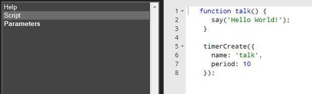 Este script debería hacer que las palabras "Hello World!" aparece en una burbuja de texto encima de su objeto cada diez segundos.