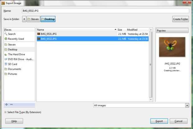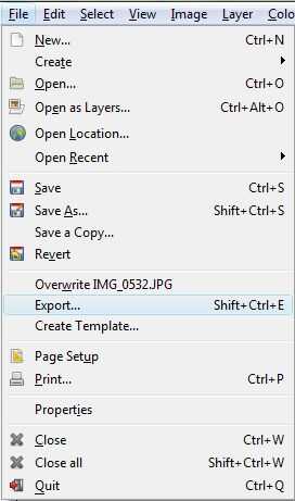 Cuando termines editando la imagen, haga clic en archivo > Exportar y haga clic en el archivo usted editado, a continuación, haga clic en exportar, Nota: No guarde el archivo porque si dirán que sólo se puede utilizar "guardar" para guardarlo en un formato de archivo GIMP.