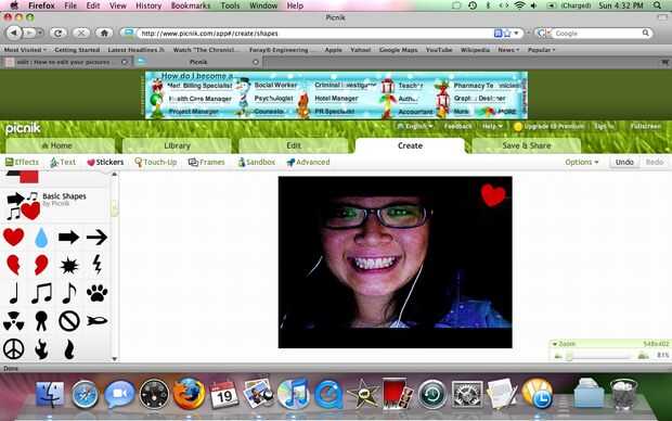 (Con mi foto, decidí hacer CinemaScope en "Efectos" y una pegatina de corazón en "Stickers").