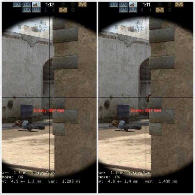 Con una AWP, un torso tirado o superior, es un frag paso a paso (Nota: una matanza de frag en counterstrike). Debido a esto, es un tiro más fácil hacer y más ventajosa para apuntar más bajo que al apuntar con un rifle. Similar a la del último ejemplo, el punto de mira está situado en medio de las dos paredes, dar tiempo para reaccionar a un blanco móvil.