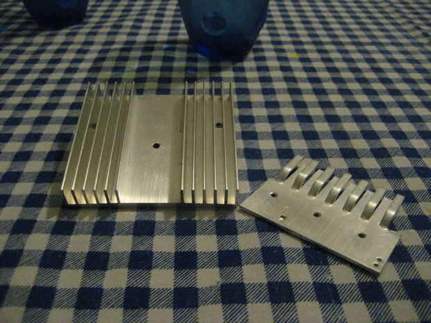 Mi manera de enfriar eficientemente es conseguir dos disipadores de aluminio en forma como en la imagen. Grande enfriará poco a poco el centro, mientras que el delgado uno será utilizado para enfriar los lados.