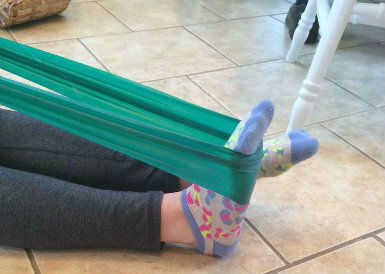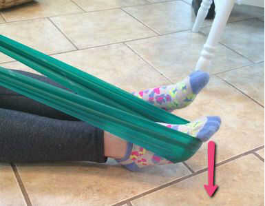 El primer ejercicio consiste en colocar la banda de resistencia alrededor de la bola del pie con los dedos de los pies hacia arriba y tirando de la banda hacia usted, formando por lo tanto la resistencia. A continuación, presione hacia abajo en la banda como si usted está tratando de hacer que los dedos toquen el suelo. Este ejercicio trabaja los músculos en la parte posterior del tobillo. Completar 3 series de 10 repeticiones.