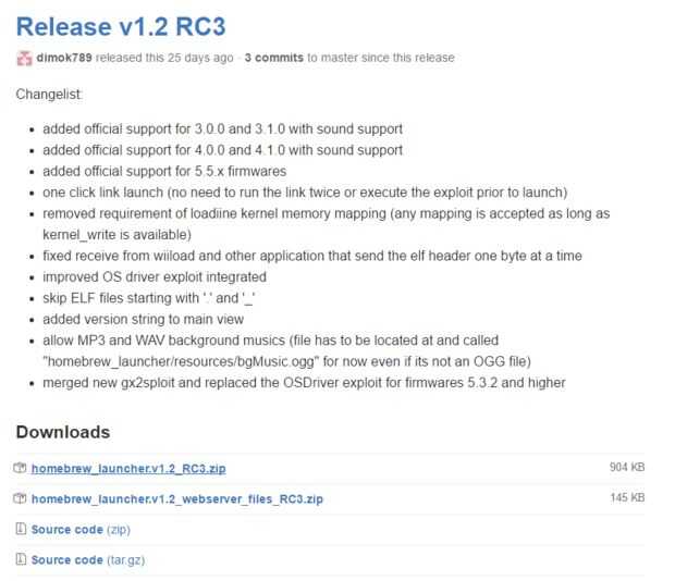 Ahora, necesitamos los archivos de Homebrew Launcher desde GitHub.