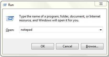 Haga clic en tecla de Windows + R o Bloc de notas tipo y haga clic en Inicio o haga clic en todos los programas > accesorios > Bloc de notas