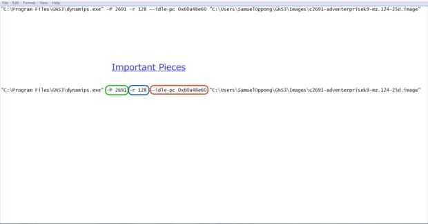 "C:\Program Files\GNS3\dynamips.exe" -P 2691 -r 128 --idle-pc 0x60a48e60 "C:\Users\<strong>Your-Username</strong>\GNS3\Images\c2691-adventerprisek9-mz.124-25d.image"