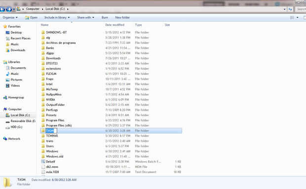 2. en el directorio, crear una carpeta y asígnele el nombre TASM (o cualquier nombre que quieras).