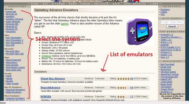 Se utilizará el emulador de Gameboy Advance, Visual Boy Advance como un ejemplo