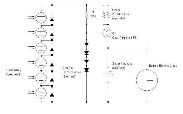 Tenga en cuenta que hay sólo cuatro diodos en el circuito base del transistor regulador Q1 y esto es porque es necesario reducir el voltaje de la fuente de alimentación del reloj--este tipo de reloj tiene considerable contenido electrónico y demasiada tensión puede hacer que la operación de reloj errático en contraste con la robustez de una traslación.