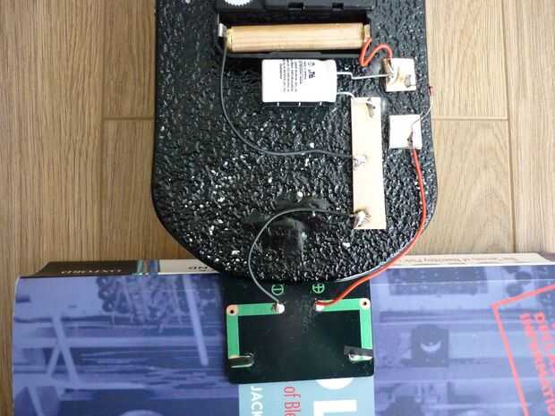 Finalmente soldar el otro extremo de la black lead a la plataforma que sirve como la parte negativa del circuito y la roja a la almohadilla que está conectada con el lado positivo del condensador estupendo.