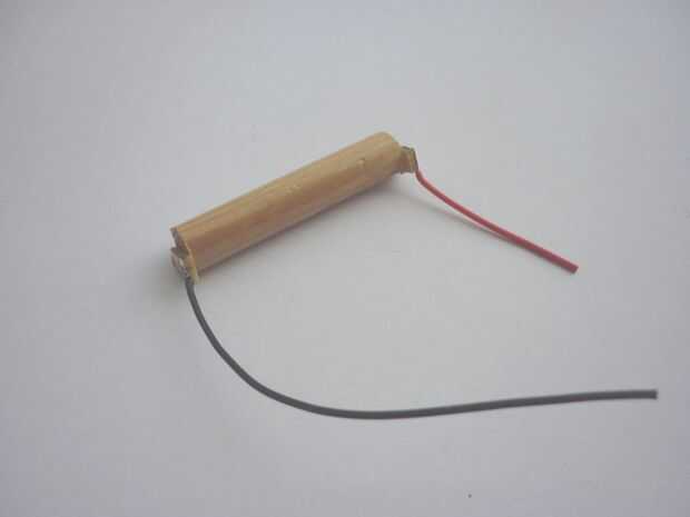 Ahora tenemos que conectar nuestro circuito para el reloj. Es posible soldar directamente a las conexiones de la batería, aunque pueden ser difíciles de 'lata'. Otra forma es cortar un trozo de espiga de madera para ser la longitud de una célula del AA y luego cuña los alambres de conexión el compartimiento de batería posiblemente con algún papel de aluminio para sujetar los cables en su lugar. La siguiente manera hace una solución más permanente.