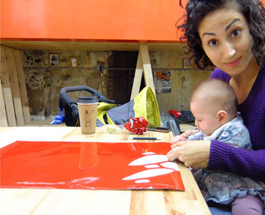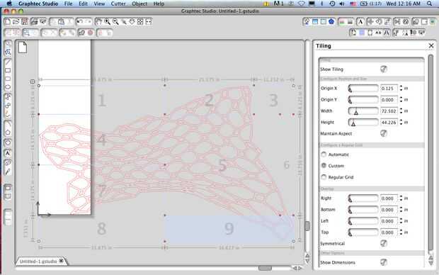 El diseño comenzó como una maqueta de photoshop, se trasladó a Illustrator, luego a AutoCAD para coordinar con los arquitectos y para comprobar los tamaños y finalmente a Graphtec Studio software para preparar cada sección para el corte.