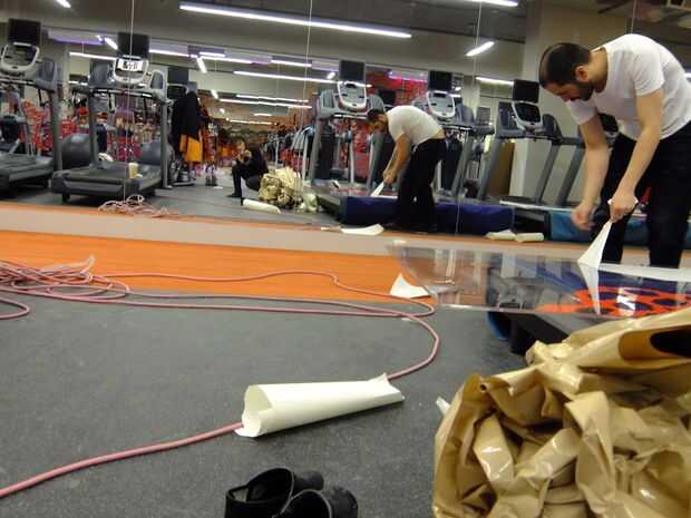 Tenga cuidado de no golpear accesorios, luces, personas como usted mover 4' x 8' piezas de plástico alrededor de un espacio que ahora cuenta con equipamiento y acabados. Encajan en canales. Utilice el empaque herramienta para colocar goma acabado frente y dorso. Tenga en cuenta que estos probablemente tendrá que ser cortado en tamaños más pequeños a ser más manejable. Hacen bastante también, delantera y posterior.